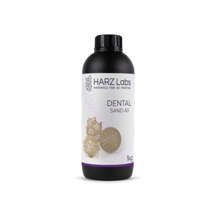 Фотополимер Dental Sand A3 представляет собой композитную смолу с микро-наполнением типа PMMA, изготовленную из биосовместимого сырья, цвет которой меняется в диапазон A1-A3 по шкале Вита в зависимости от времени дозасветки. Он обладает высокой твердостью по Шору D, высокой прочностью на растяжение и устойчивостью к механическим и химическим воздействиям. Рекомендуется для печати временных коронок и мостов. Отсутствие запаха и вредных мономеров позволяет печатать даже в маленькой лаборатории.