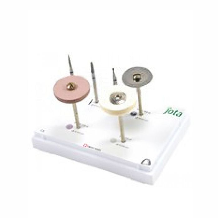 Набор инструментов для керамики Jota Ceramic Kit (7 инструментов) №1428: алмазные боры 863.HP.016, 850.HP.023, 801.HP.014, полиры 1151.HP.210, 9131М.UM.220, диск алмазный 915DF.UM.190, дискодержатель 303.HP.050