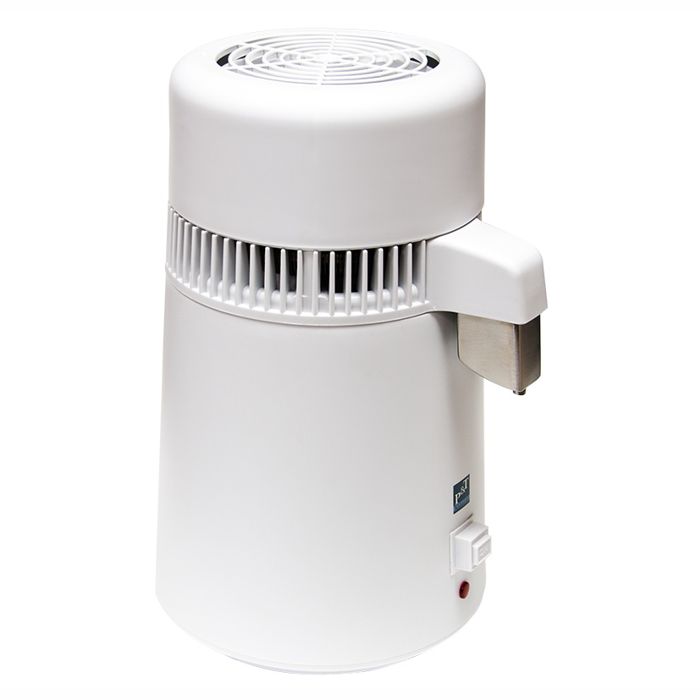 Экономичный, настольный дистиллятор производит около 1 литра воды высокого качества в час. Автоматически отключается при полном испарении воды и достижении температуры 160 градусов Цельсия (мера безопасности). Этого количества вполне достаточно для работы настольного автоклава.