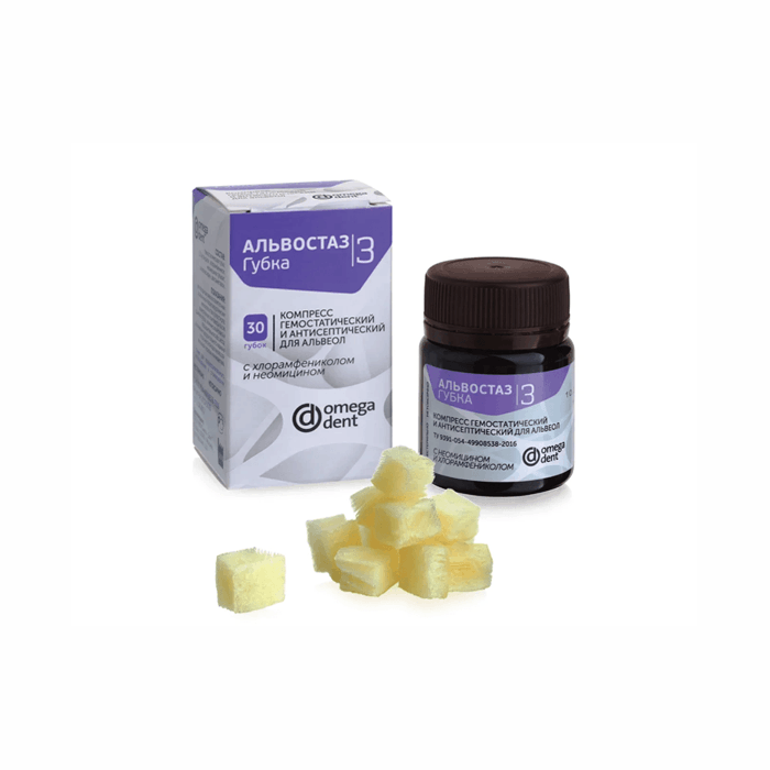 Препарат, используемый в пародонтологии и хирургической стоматологии, содержит ряд антибиотиков широкого спектра действия, отличающихся бактерицидным эффектом. "АЛЬВОСТАЗ" (губка) имеет достаточно высокую активность в отношении возбудителей гнойных инфекций и патогенных микроорганизмов. Препарат воздействует на ряд штаммов бактерий, которые устойчивы к тетрациклинам, пенициллину, сульфаниламидам.