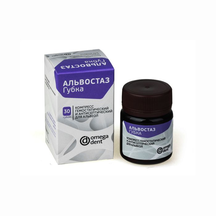 "АЛЬВОСТАЗ" (губка) – это кровоостанавливающий и антисептический компресс для альвеол, представленный в виде гемостатических коллагеновых кубиков (1х1 см), пропитанных лекарственным раствором.