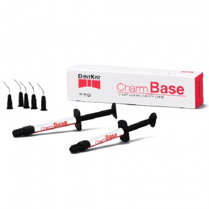 Материал CharmBase (ЧамБейз) – это светоотверждаемая, рентгено-контрастная прокладка для предохранения пульпы зуба, тип 2, класс 2, группа 1 в соответствии с классификацией ISO 4049. Изделие позволяет предохранить пульпу от токсического воздействия кислот, обладает стабильностью и низкой растворимостью, термоизолирующими свойствами, а также химическим сродством к полимерным материалам, которое обеспечивает высокую степень сцепления с композитами. Материал представляет собой готовую пасту, заправленную в шприц, отверждается светом в течение 20-40 секунд. В состав материала входит Bis-GMA и силанизированное (неограническое) стекло. Каждый шприц закрывается защитным колпачком из полипропилена. С изделием поставляются одноразовые наконечники. Изделие нестерильно.