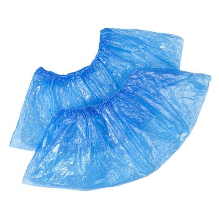 Бахилы полиэтиленовые, СУПЕРпрочные, с двойной резинкой, и ДВОЙНОЙ подошвой ,голубые, 7гр. пара, 50мкм/шт 250 пар в упаковке, Россия