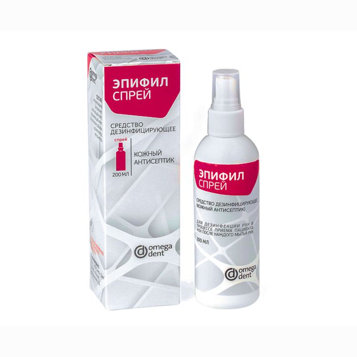 Эпифил спрей представляет собой готовое к применению средство в виде прозрачной жидкости светло-голубого оттенка с ароматизатором. рН средства 7±1 ед.