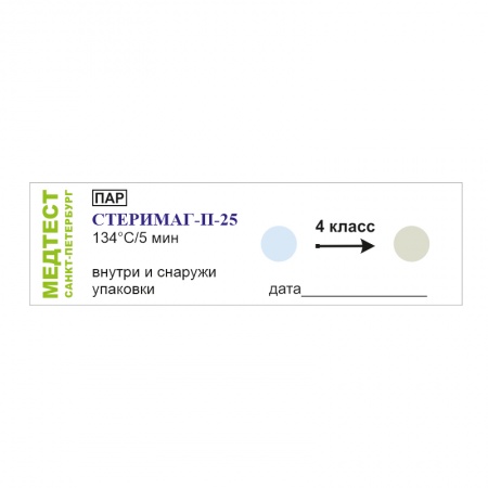 Медицинское изделие Индикатор химический для контроля процессов паровой стерилизации, многопеременный "СТЕРИМАГ-П-25 134 С/5мин" (РУ № РЗН 2019/8847 от 30.08.2019) соответствует классу 4 по ГОСТ ISO 11140-1-2011.