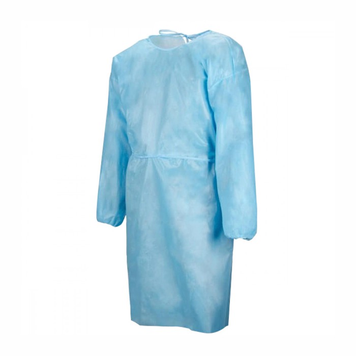 На спине - глубокий запах ("стерильная спина"), четыре завязки на поясе, рукава на трикотажном манжете, окантованный ворот на регулируемой застежке типа "Велькро". Изготовлен из гипоаллергенного, безворсового, воздухопроницаемого, водоотталкивающего полипропиленового нетканого материала.