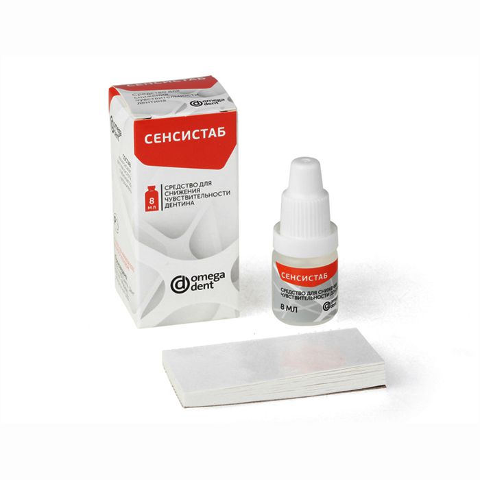 "СЕНСИСТАБ" отличается легкостью нанесения и биологической совместимостью с мягкими тканями. Он не обесцвечивает эмаль и не отличается токсичностью.