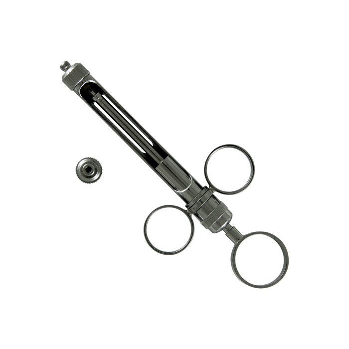 Карпульный шприц (инъектор стоматологический)— многоразовое металлическое устройство, имеющее корпус, поршень и иглу. Наиболее приспособленный к применению современных карпульных анестетиков. Шприц надежно удерживает карпулу, удобен в работе. Конструкция шприца позволяет надавливать на шток и оттягивать его при аспирации одной рукой. Принцип действия: поместить вшприц карпулу к нему прикрутить одноразовую иглу, и устройство готово к применению.