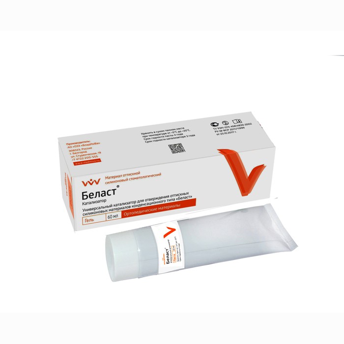 «Беласт» КАТАЛИЗАТОР — универсальный гелеобразный катализатор для конденсационных силиконовых материалов при получении точных оттисков различных твердых и мягких тканей протезного поля.