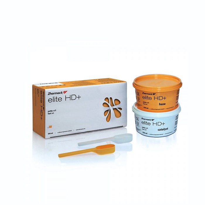 Elite HD+ Putty Soft Fast Set (Элит HD+ Патти Софт Фаст) – оттискной материал высокой вязкости на основе А-силикона. Быстрое схватывание. Гидросовместимый, тиксотропный, прочный, не деформируется при извлечении. Подходит для создания двухфазных оттисков коронок, мостов, вкладок и накладок в двухэтапной и одномоментной технике.