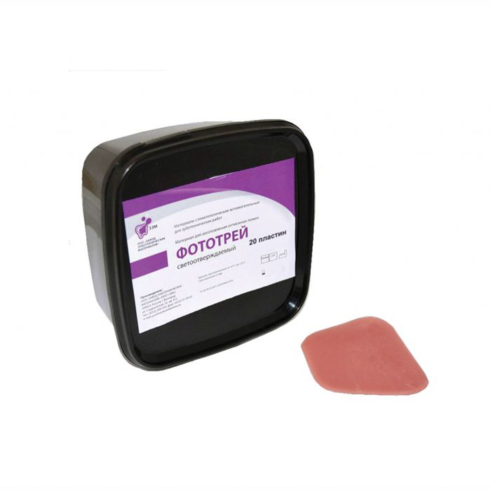 Материал «Фототрей» представляет собой высоконапол-ненную (>85%) пасту на основе метакрилатных олигомеров, в состав которой входят: модифицированный тонкодисперсный наполнитель, инициирующая система, стабилизатор радикаль-ной полимеризации, пищевой краситель и отдушка.