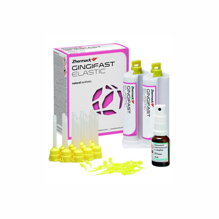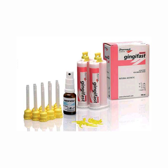 Упаковка: 2 картриджа емкостью 50 мл 1 флакон Separator Gingifast объемом 10 мл 12 желтых смесительных наконечников 12 желтых интраоральных канюль распылитель