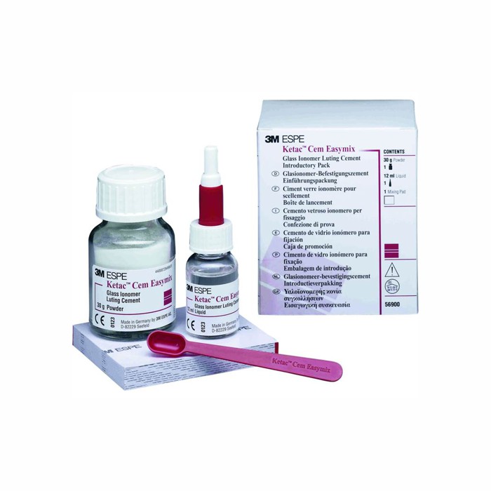 Ketac-Cem Easymix - стеклоиономерный рентгеноконтрастный цемент для фиксации. Совмещает в себе все преимущества классического стеклоиономерного цемента и удобной гранулированной формы порошка, которая улучшает смачиваемость, позволяет быстрее производить замес и практически не создают пыли.