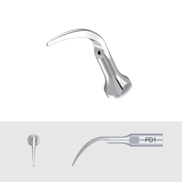 Узкая и острая пародонтологическая насадка PD1, рекомендуется для очистки и ирригации зубо-десневой бороздки или парадонтальных каналов....